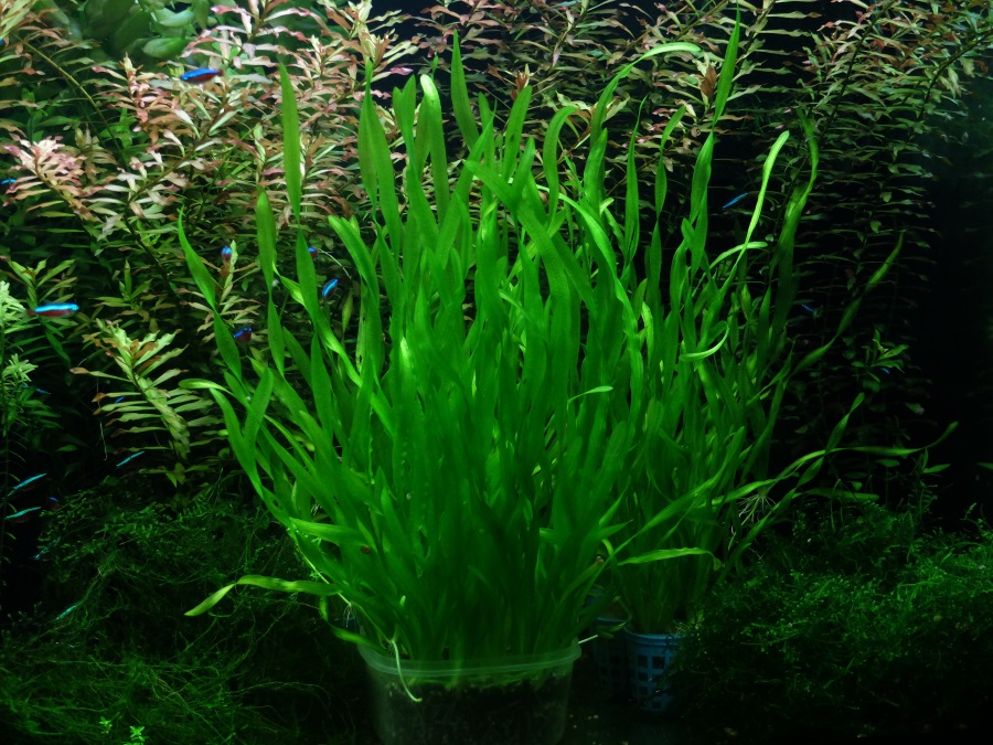Vallisneria asiatica (momentálně ve čtyřstovce). Zatím nejžhavější kandidát na prorůstání velkého pařezu ...